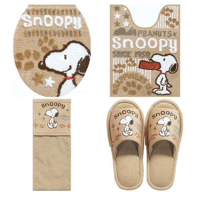 スヌーピー シンボル トイレタリー4点セット(トイレロングマット・洗浄ふたカバー・PHカバー・スリッパ)+特典付 ベージュ Snoopy ピーナッツ