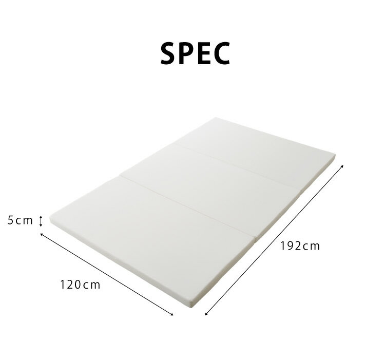 製品仕様商品名 3つ折りバランスマットレス セミダブルサイズサイズ/寸法 ■サイズ:外寸<使用時>幅120センチ 長さ192センチ 厚さ5センチ<収納時>幅120センチ 長さ64センチ 厚さ15センチ生産国 日本素材/材質 ■側地:ポリエステル100%(中国製)■中材:ウレタンフォーム色 アイボリーご注意事項 ■モニターの発色の具合によって、実際の物と色が異なる場合がございます。